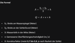 Um die Wassermenge eines Baches, die Restwassermenge oder die Schüttung einer Quelle grob zu bestimmen (z.B. für Dosierungen oder zur Beurteilung der Wasserführung), wird in der Feldarbeit die Überschlagsrechnung herangezogen…. [Weiterlesen]