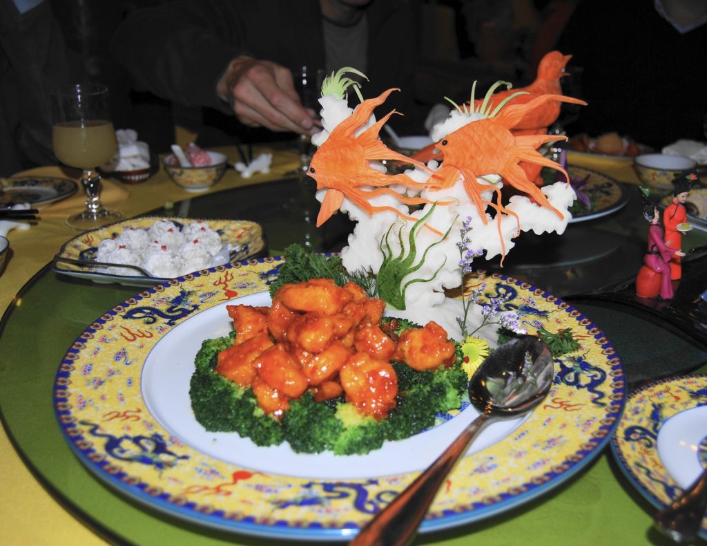 Chinesische Gerichte mit Fisch und Flusskrebsen