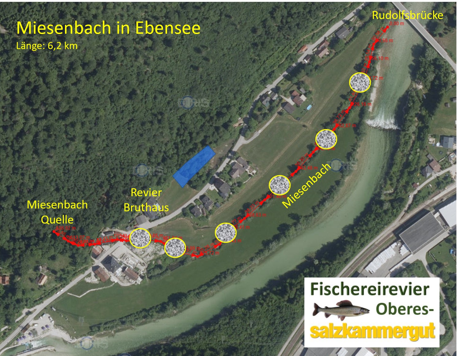 Auf der Suche nach kleinen überschaubaren Projekten, die nicht viel Kosten, jedoch einen großen Nutzen auf das Gewässersystem haben könnten, möchte ich unter „Vision“ sammeln um ggf. einen Backlog solcher Projekte zu haben, wenn wir die Mittel dazu hätten um diese umsetzen zu können. Der Miesenbach in Ebensee – ein kleines Juwel für die Fischfauna der Oberen Traun! Es wäre mit wenig Aufwand und Kosten das Potenzial des Miesenbach als Laichhabitat zu verbessern. Die Idee ist, mit gezielten Kieszugaben die Eigenreproduktionsfähigkeit der Salmoniden, insbesondere der Äsche, zu fördern, ist absolut vielversprechend und ökologisch sehr wertvoll.