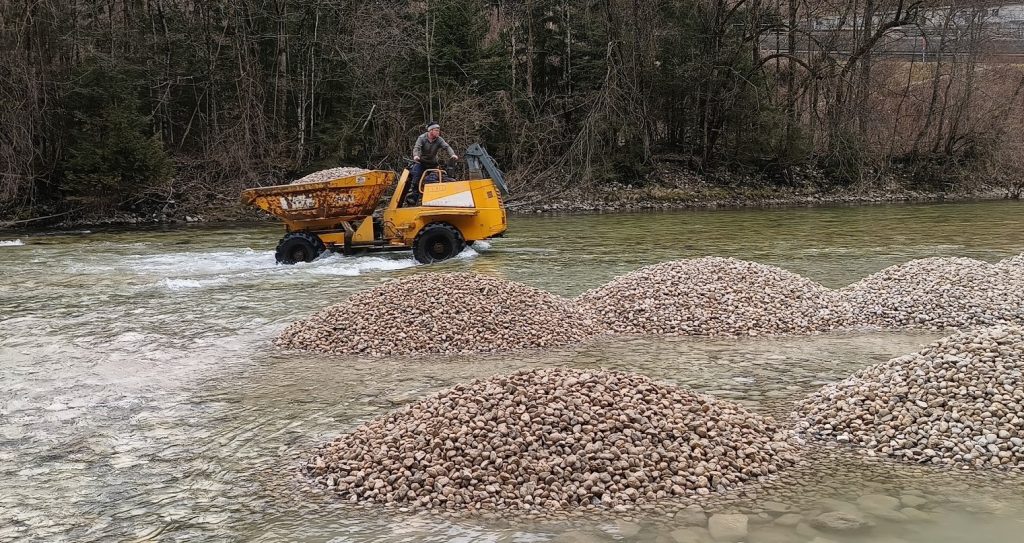 - Die Menge und Verteilung des Kieses: Eine fachkundige Einschätzung der benötigten Menge und der optimalen Verteilung im Bachbett wäre ratsam, um sowohl Laichhabitate zu schaffen als auch die natürliche Gewässerstruktur zu berücksichtigen.