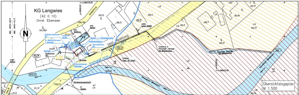 über die Grundstücke Nr. 164 und 155/2, KG Langwies - Notwasserversorgung über temporäre Wasserentnahme aus dem Schusterbach zur
