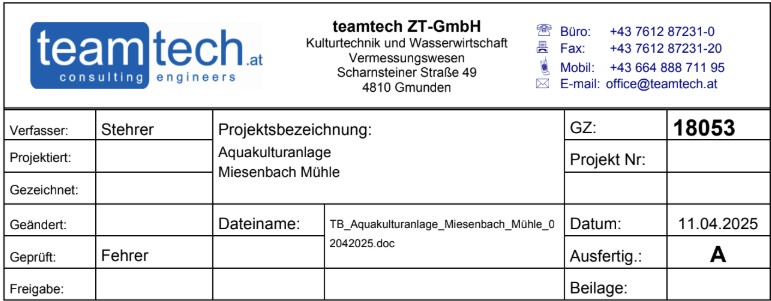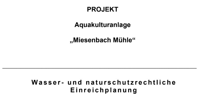 Durch die Sanierungsarbeiten und Umgestaltung der Aquakulturanlage im Uferschutzbereich des Miesenbaches, der ein Vorfluter der Traun ist, wird gem. OÖ. Natur- und Landschaftsschutzgesetz 2001 um naturschutzrechtliche Bewilligung angesucht. Zudem wird um die Herstellung der wasserrechtlichen Ordnung für die bestehende Anlage sowie um die wasserrechtliche Bewilligung der geplanten Umbaumaßnahmen ersucht.