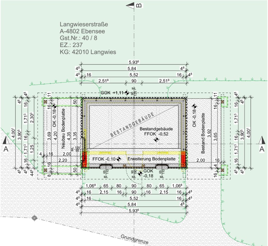 - Konstante Grundfläche: Um den historischen Standort an der Miesenbachmühle eins zu eins zu erhalten, bleibt der Fundamentbereich in seinen Abmessungen unverändert.