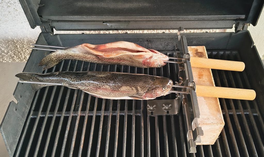 Nach Versuche mit herkömmlichen Methoden wie Holzspießen, Alufolie, Antihaftspray und eingeölten Grillrosten zeigt, dass ich meine Erfahrungen mit optisch nicht so schönen „Grill-Fischen“ gemacht habe. Aus der Erfahrungen gelernt, bin ich nun auf eine hervorragende Lösung gestoßen mit einen speziellen Fischhalter und ein Steckerlfisch-Aufsatz und genau das ist der Schlüssel zu einem perfekten Ergebnis, sowohl in Bezug auf die Optik als auch auf das Gelingen, was vielleicht auch andere „Hobby-Griller“ davon abhält, auch des öfteren Fische zu grillen.