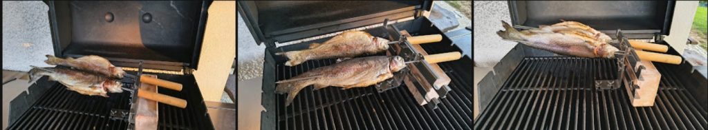 Als Gelegenheits-Steckerfischbrater und Gasgrill-Griller bevorzuge ich persönlich auch für Steckerfische die für mich unkomplizierteste, schnelle und saubere Methode mit meinen Weber-Gas-Griller, denn ich sowieso auf der Terrasse stehen habe und zum Steckerfisch grillen mit einem speziellen „Spießsystem“ nachgerüstet habe.