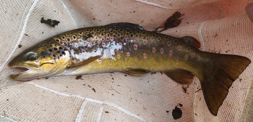 In den letzten 3 Jahren wurden jährlich 10.000 Bachforellen-Brütlinge mit einer Länge von 3 bis 5 cm besetzt. Der Erfolg dieser Besatzmaßnahmen lässt sich jetzt im Zuge der Baustellen-Notabfischung beobachten.