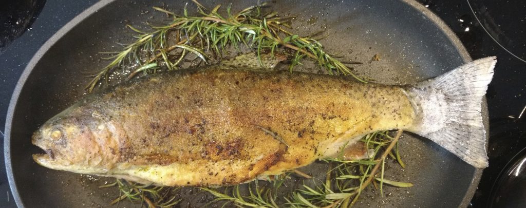 Sie ist leider schon fast so selten wie die „Blaue Mauritius“ zu bekommen, denn „Forelle blau“ ist auf (vielen) Speisekarten verschwunden und damit eine Zubereitungsart, die heute nur noch einem Fischer und seinen guten Freunden vorbehalten ist. Den eine Forelle, am am selben Tag herausgefischt und zu verkocht, kann sich nicht so ohne Weiteres mit einer gebratenen „Forelle Müllerin“ messen. Die wohl nobelste Zubereitung ist auch die einfachste: ab in den Wein-Essig-Sud und in diesem ziehen lassen. Damit hat man ein wahrlich grandioses auf das Wesentliche konzentriertes Essen.