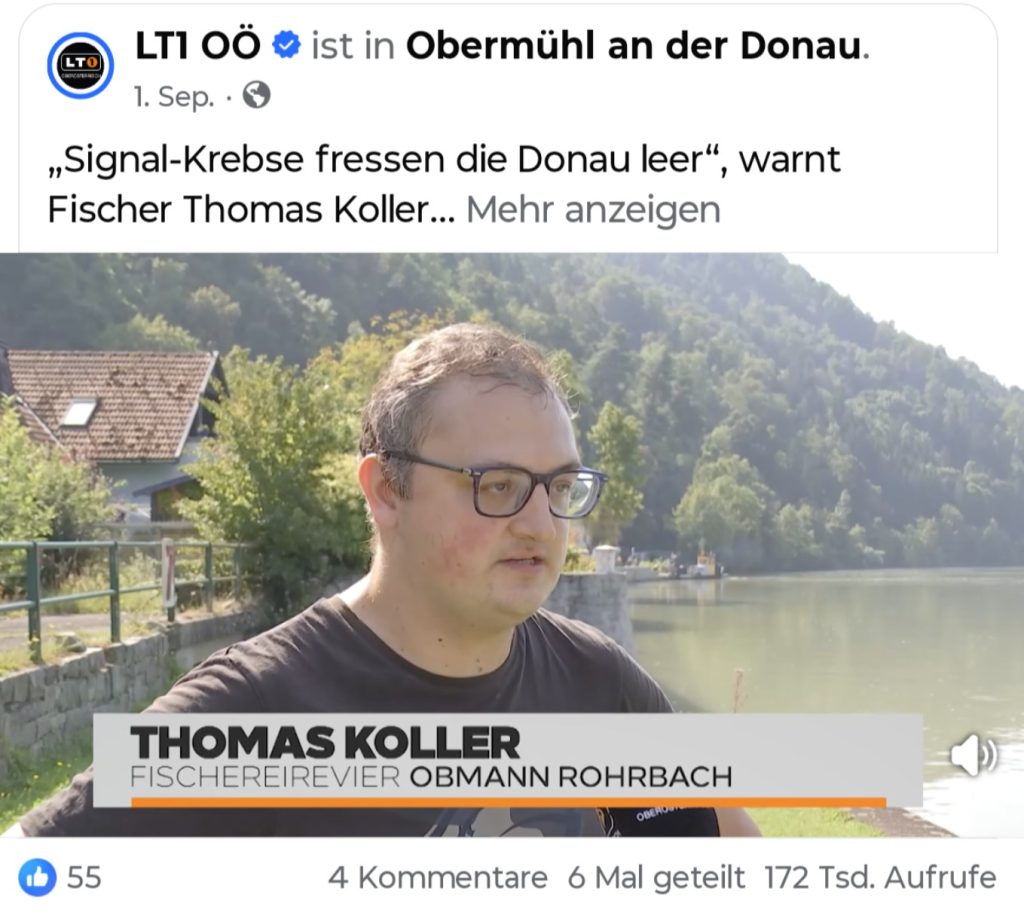 Die emotionale, unerwartete und überregionale Story „Signalkrebse fressen die Donau leer“ hat die reguläre Reichweite eines Regionalvereins wie dem LASK bei Weitem übertroffen und sogar der „Elch Emil“ der einige Wellen geschlagen hatte, kann diesen Bericht nicht das Wasser reichen! Das ist ein fantastisches Signal! 172.000 Aufrufe über Facebook belegen eindrucksvoll, dass das Thema Flusskrebse und die damit verbundenen ökologischen und kulinarischen Aspekte ein riesiges öffentliches Interesse haben. Die hohe Reichweite im Fall des Signalkrebses ist besonders spannend, da diese Art zwar invasiv ist und unseren heimischen Edelkrebs verdrängt (Stichwort Krebspest), aber gleichzeitig eine ausgezeichnete Delikatesse darstellt. Danke an das LT1-Team mit Theresa Breiteneder & Kammermann für die tolle Reportage.