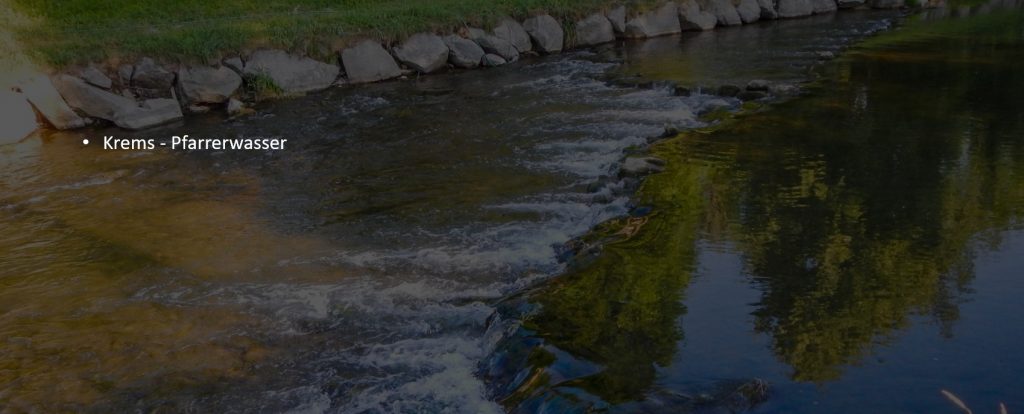 Die liebliche Krems, die durch das Hochwasser 2002 stark gelitten hat und danach auch trapezförmig, mit minimalen Uferbewuchs begradigt wurde. Obwohl die Krems recht Warm wird, halten sich einige Bachforellen, die in dieser Zeit die sauerstoffreichen Rauschen nutzen. Speziell im Frühjahr ist die Krems einen Besuch wert. Im oberen Revierbereich gibt es recht schöne und fischreiche Strukturen.Im Herbst kann hier auch der Fang eines Huchen die Überraschung sein. Renaturierungsprojekte und die Schaffung einer durchgängigen Fischpassierbar Bei der Rausche beim Tennisplatz die in eine Pendelrampe umgebaut wurde.