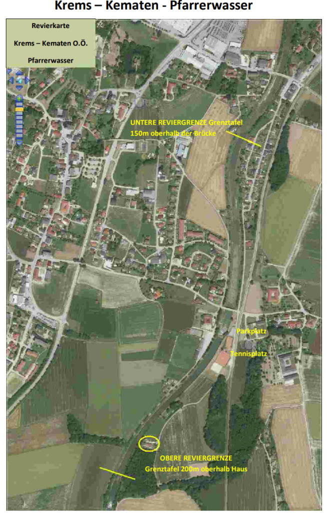 Revier-Übersicht Pfarrerwasser in Kemenaten an der Krems (OÖ.).