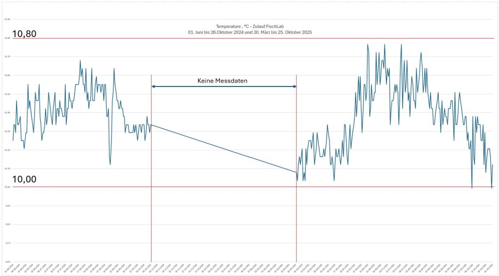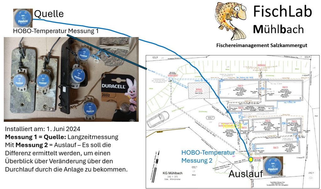 Die Wassertemperatur ist einer der kritischsten Parameter in einer Fischzuchtanlage (Aquakultur), da sie das Wohlbefinden, das Wachstum, die Futterverwertung und die allgemeine Gesundheit der Fische direkt beeinflusst. Um einen Überblick über die Wassertemperatur zu haben, sind bei uns zwei Temperaturlogger HOBO MX2201 in Verwendung. Er ist wasserdicht und eignet sich somit ideal für Temperaturmessung in der Fischzucht.
