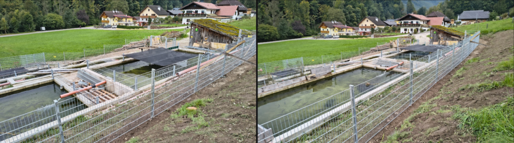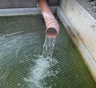 Am Auslauf der Anlage führen wir eine zweite Messung durch um die Veränderung die durch den Wasserdurchlauf durch die 7 Becken, die Temperatur verändert.