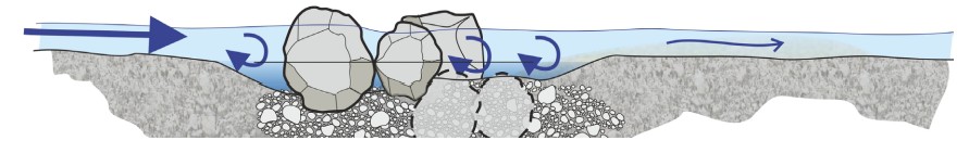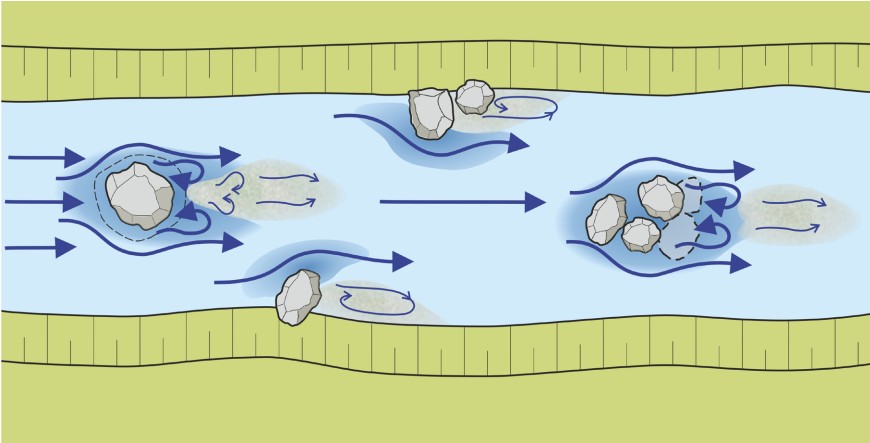 Die durch Strukturen entstehende Strömungsdynamik ist typisch und sehr vorteilhaft für Fische: