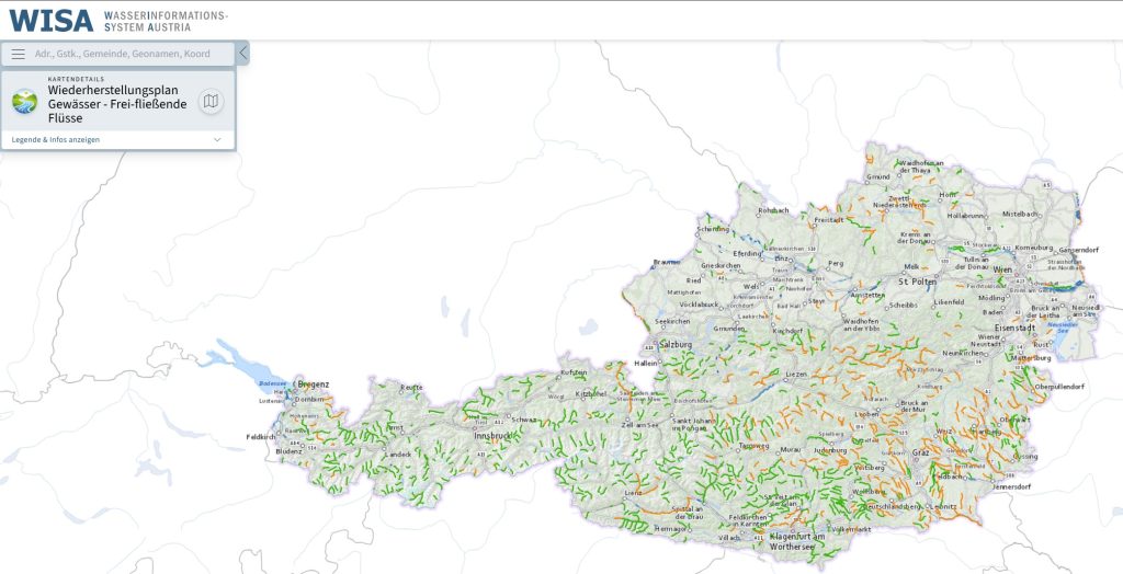 Im September 2000 wurde die Wasser-Rahmenrichtlinie nach fast einem Jahrzehnt politischer Vorarbeit durch das Europäische Parlament und den Rat verabschiedet. Die beiden Hauptziele der Wasser-Rahmenrichtlinie sind der Schutz und die Verbesserung der aquatischen Umwelt sowie die Förderung einer nachhaltigen, ausgewogenen und gerechten Wassernutzung. Neu ist nun die EU-Wiederherstellungsverordnung (Nature Restoration Law – Verordnung (EU) 2024/1991), die am 18. August 2024 in Kraft getreten ist, diese stellt einen Wendepunkt für den Gewässerschutz dar. Erstmals gibt es rechtsverbindliche Ziele, die über den bloßen Erhalt hinausgehen und die aktive Wiederherstellung fordern. Eine erste Analyse der wichtigsten Punkte im Bezug auf Gewässer und freifließende Flüsse ist die Wiederherstellung der natürlichen Konnektivität von Oberflächengewässern. Dass die Obere Traun als Teil des Plans für freifließende Flüsse mit 6 Maßnahmen im Fokus steht, unterstreicht die regionale Bedeutung dieses Gewässers. Nachfolgend eine Übersicht zu den Hintergründen und den typischen Maßnahmen und auch Abschnitte, die an der Oberen Traun für das Ziel „2030“ relevant sind.