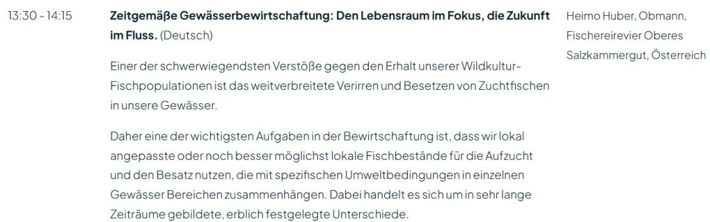 Ebenso möchte ich mich herzlich bei Harald Edinger, DI Karl Fehrer und Mag. Walter Reisinger für ihre Teilnahme, ihre fachliche Expertise am Stand und die vielen inspirierenden Fachgespräche bedanken. Nur durch solch ein engagiertes Team lässt sich die Brücke zwischen Wissenschaft und Praxis schlagen. Es war inspirierend zu sehen, wie die Community unsere Ansätze für eine naturnahe fischereiliche Gewässerbewirtschaftung aufgenommen hat. Die EWF vereint alles, was das Fliegenfischen ausmacht. Wir sind stolz darauf, einen Teil zur Zukunft dieser Passion – besonders in unseren wunderschönen Gewässern im Salzkammergut – beigetragen zu haben.