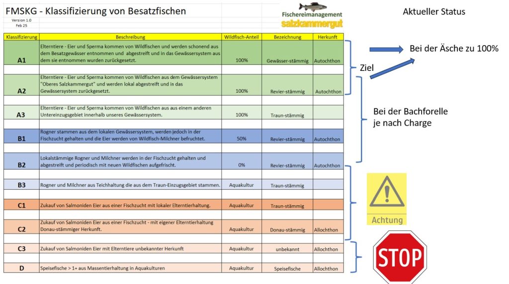 Ein zentraler Punkt unserer Arbeit ist die klare Klassifizierung von Besatzfischen. Wir sind überzeugt: Jeder Bewirtschafter eines Gewässers sollte sich vor jeder Besatzmaßnahme zwei essenzielle Fragen stellen: