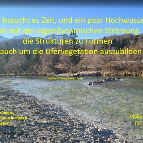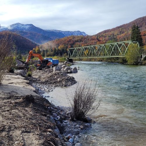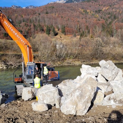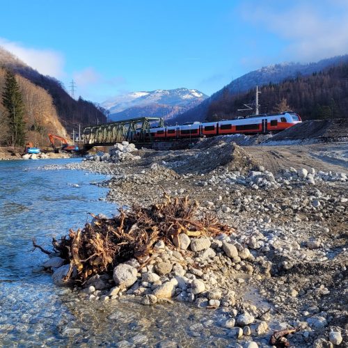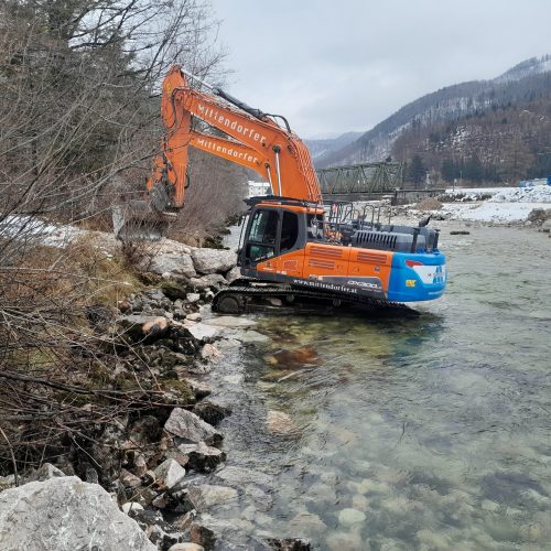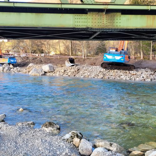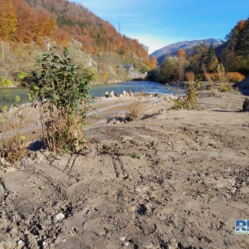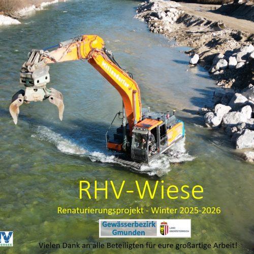 Renaturierung einer Fläche von rund 1 ha neben der Traun: Gemeinsam mit dem Gewässerbezirk Gmunden wird ein Grundstück des RHV zwischen der ÖBB-Bahntrasse und der Traun nach ökologischen Gesichtspunkten als Rückzugsgebiet für Fische, Amphibien und Lurche gestaltet. Die alte bestehende, künstliche Ufersicherung wird geöffnet und der Traun mehr Freiraum gelassen. (Quelle: Journal der Marktgemeinde Bad Goisern, Ausgabe 3/2021). Nachfolgend ein paar Fotos über die Wasserbau-Phase, im November-Dezember 2025.